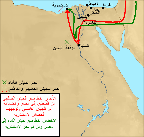 خريطة توضح خط سير الحملة الفرنسية على مصر