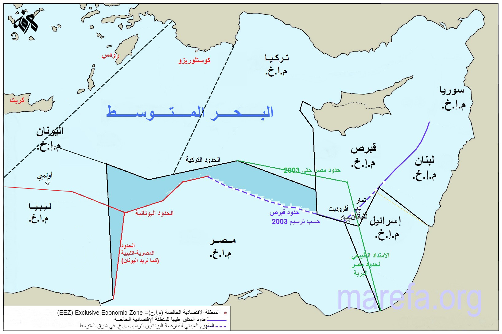 Nayel Shafei בטוויטר هذه الخريطة تبين الفرق باللون اللبني الداكن في الحدود المصرية حسب الرؤية التركية والرؤية اليونانية